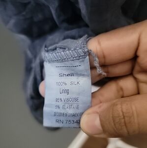 The Amanti Made In Italy 100% Silk Blouse features a whimsical floral pattern in a flowy design with large 3/4 sleeves. This pullover blouse in a beautiful blue color is perfect for travel or casual occasions, adding a touch of romance and whimsy to your outfit. Made from high-quality silk fabric, this blouse offers a regular fit and requires dry cleaning for maintenance. The brand, amanti, ensures a quality garment that is both stylish and unique, making it a standout piece in any woman's wardrobe. This is in great preloved condition.