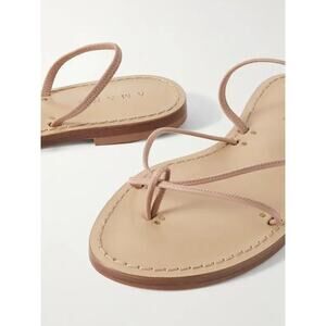 These 'The Mombasa' sandals are crafted by skilled artisans from strips of smooth leather that elegantly loop together and frame the foot. The sandals have a thong style and are a flat, strappy, casual style.