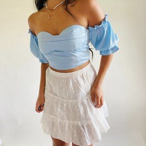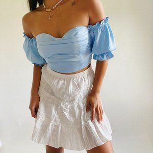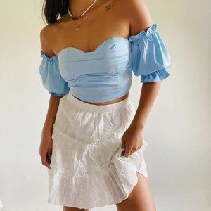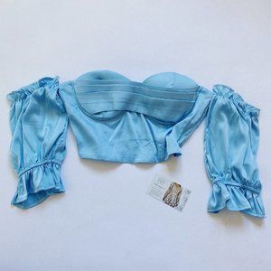 Amara Romantic Off Shoulder Satin Top (Blue)