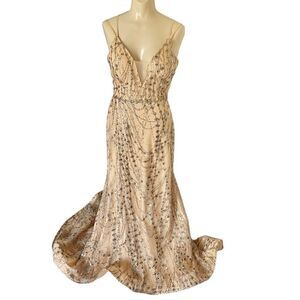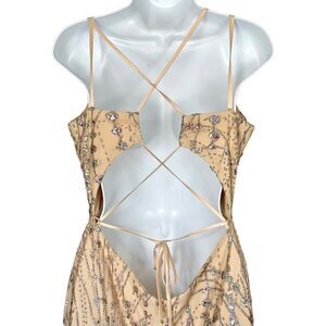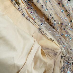 Amarra Colorful Glitter Sequin Tulle Satin Tie Back Floor Length Prom Dress