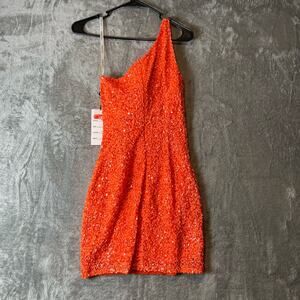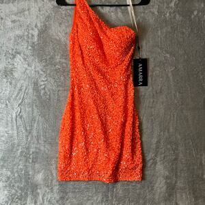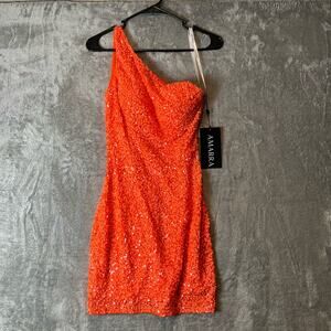 Amarra One Shoulder Sequined Dress Style 87439 Neon Orange Sz 4 New