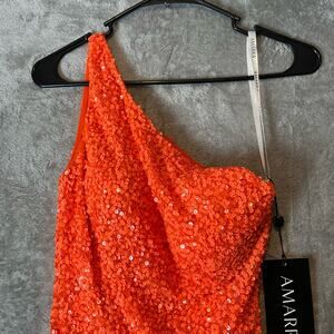 Amarra One Shoulder Sequined Dress Style 87439 Neon Orange Sz 4