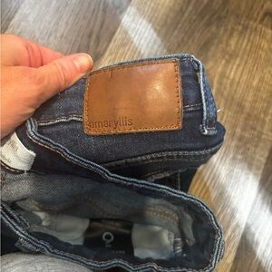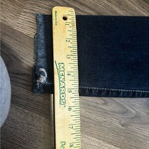 Sleek high rise jeans with button detail. Dark blue hue. Perfect for versatile styling. Gently used, but great shape. Please see pictures for full condition.
