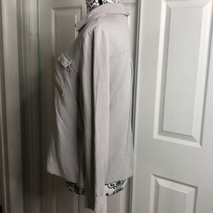 Amaryllis Light Gray Cotton Linen Blend Button Up Pocket Top M