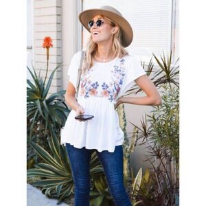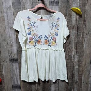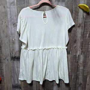 Details: short sleeve, pleated bottom, lightweight oversized, keyhole button back