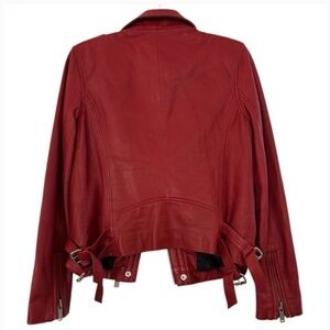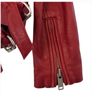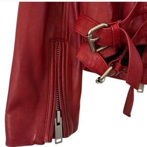 NWT Amaryllis Genuine Leather Moto Biker Motorcycle Asymmetric Jacket Women small Red