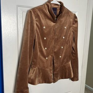 Amaryllis Velvet Peplum Jacket Pearl Buttons with hook and eye closure