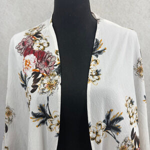 Amaryllis White Floral Short Wide Sleeve Kimono Sz 2X Boho Beachy Flowy Summer