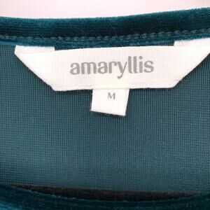 Amaryllis Women's Size M Lightweight Ruffle Short Sleeve Velvet Tee Teal Green