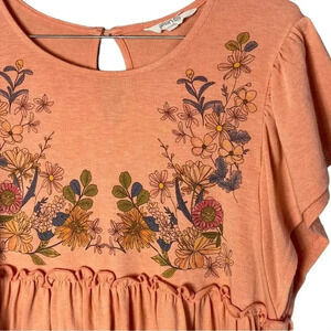 Amaryllis Women’s Size Small Flower Print Baby Doll Top Short Sleeve Orange