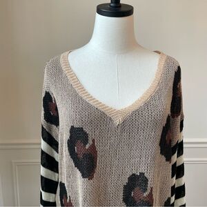 Amaryllis x Ashlee Nichols Leopard Stripe Oversized Lightweight Vneck Sweater M