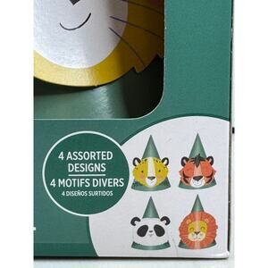 Amascon Paper Cone Party Hats 4 Designs - Lion Tiger Panda Cheetah NIB