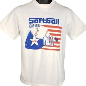 Amateur Softball Association T Shirt Vintage 80s 1987 ASA 100 Years Made In USA Mens Size Medium