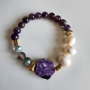 Elegant bracelet featuring rich amatist and pearls beads, perfect for adding a touch of luxury to any outfit. NEW HANDMADE ✨️