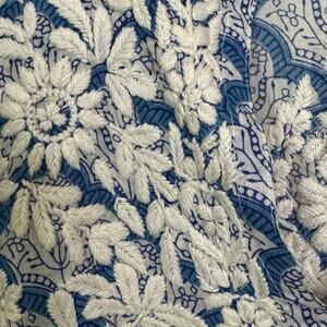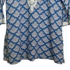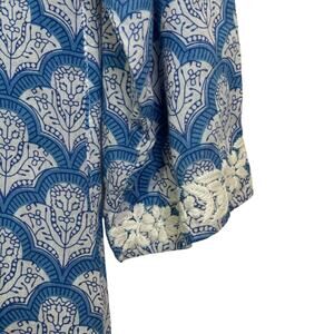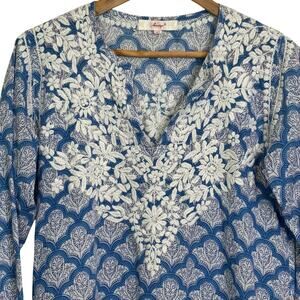 Amaya Size 42 Medium Hand Block Printed Embroidered Blue and White Tunic Blouse