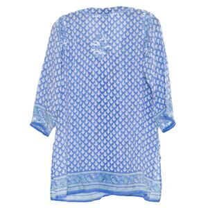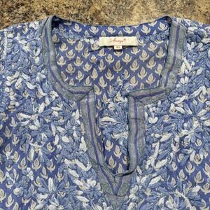 Amaya Womens Tunic Top Silk Embroidered V Neck Elbow Sleeve Blue Size 40 8 EV