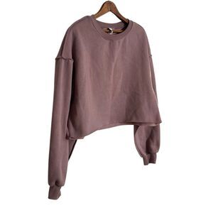 Amazhiyu NWT Cropped Fleece Long Sleeve Pullover Sweatshirt Dusty Plum Size XL