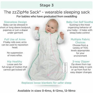 Features a 2-way zipper which zips down from the top, making it easy to place baby into sack, and also zips up from the bottom, keeping baby snugly warm during diaper changes. So easy!