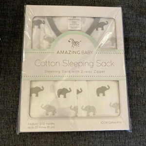 New Amazing Baby Cotton Sleeping Sack, Tiny Elephants, Sterling, Medium 6-12 months