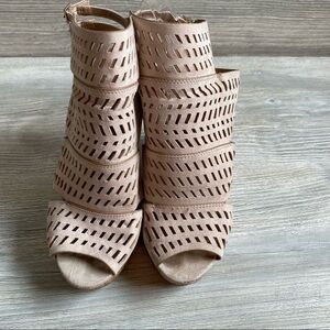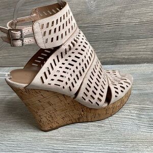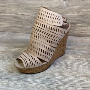 Amazing Charles David Apt laser cut leather out wedge cork platform sandals 8.5