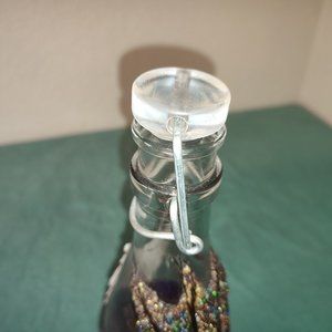 Amazing Crafted Artisan Bottle Italy Peacock Feather Design applied beads Boho