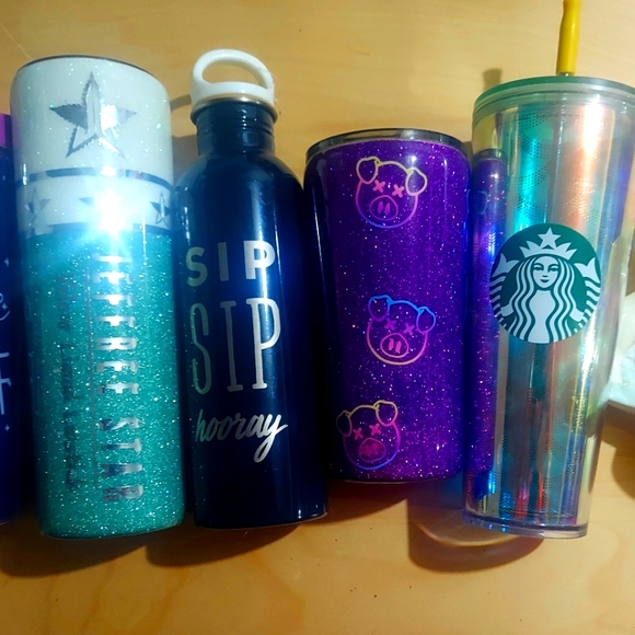 Well first we have a J star lipstick cup, next a cute Sip sip horray, then we have a super pretty Shane Dawson purple piggy cup and last we have a super cute Starbucks cup. I'm willing to negotiate on prices but please don't low ball thats all I ask lol