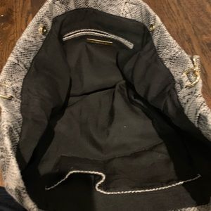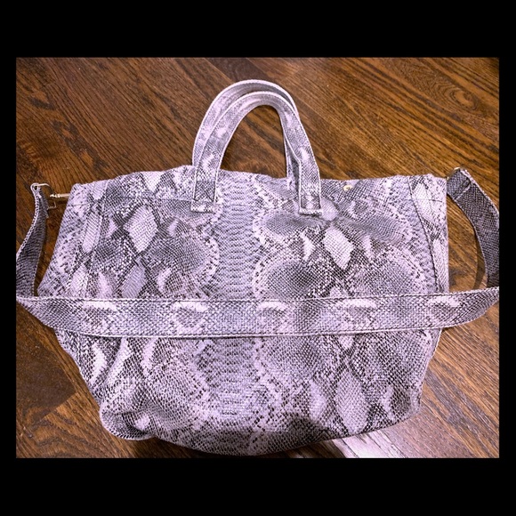 Street Level Faux Python Tote. Super lightweight, expands to fit everything and then some! Phone compartment, cross body strap, grey and white with a little sheen. Deep inside. Fall fashion must have!!!