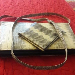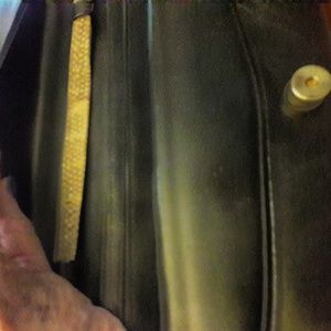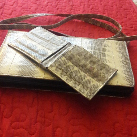 Handmade and designed by leather maker Jean Claude approx 20 years ago. Inside is soft black leather.. Several openings. Wallet shows more use than clutch. Strap adjustable and removable. Could be only one made, but not sure. Soft & very beautiful.