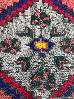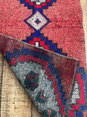Bohemian Handmade Home Decor Kilim, Turkish Vintage Area Wool Rug. Vintage rug pieces sewn on edges. Great for a small rug runner or bathmat.