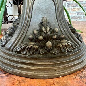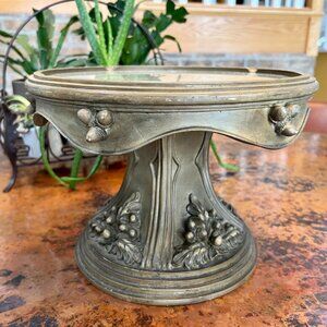 This Southern Living at Home cake/dessert stand is truly a piece of art! Made of resin with a matte olive finish with scallop edge decorated with acorn and oak leaves. Detachable glass plate on top for easy cleaning. Great way to serve a cake, donuts, brownies, fruit or any other delicious dessert or for quiche on Sunday brunch. Also makes a beautiful centerpiece set with candles. This is a solid and sturdy piece that weighs over 7 lbs. and requires extra shipping (about $14) that will be paid by Seller as listed. Approx. size: 8"T x 11"W. Glass plate is a little over 9.5". Cannot be bundled. Note: I've selected gray/green for colors on this piece - very hard to describe.