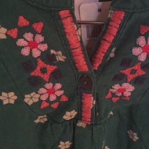 This awesome Tea Collection green embroidered dress is perfect any time of year. EUC Size 4. Green 3/4 length sleeve, pockets and embroidery on the neck. Don't pass this one up!