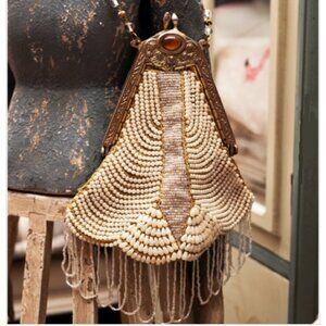 Amazing True Vintage 1920s Art Nouveau Chatelaine Bag w/ Pearls and Crystals