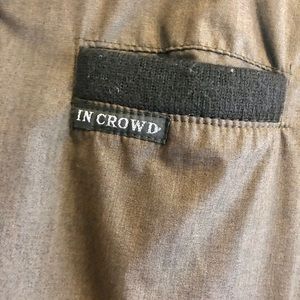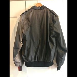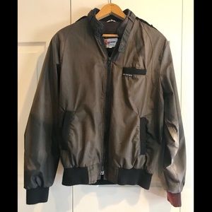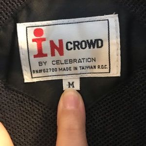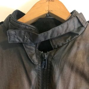 In-Crowd By Celebration! Dark Gray Vintage Bomber Jacket with very cool photo degradation on left sleeve. Belted collar. Size Medium.