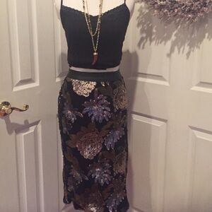 Amazing black skirt w sequin flowers, Nordstrom