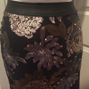 🎉🎈HOST PICK🎈🎉 Oh how I love this skirt but it just doesn't fit me right. 😞 Purchased at Nordstrom, it's great quality and has a "leather" waistband, gold and gunmetal gray sequins, full lining, and side zip. Stretchy. 26 inches long. Adorable with black booties!