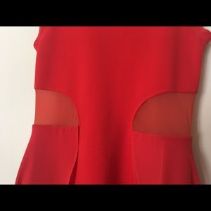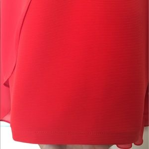 Coral / bright magenta color, stretchy fabric with flowy overlay for high-low effect. very flattering, and a show-stopper. Cute cut-out design at waist. Only worn once.