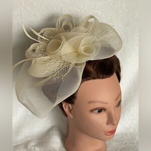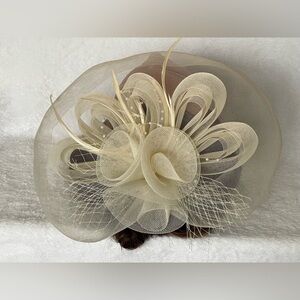 Amazing cream, color, vintage wedding fascinator hair clip feathers pearls