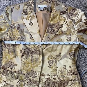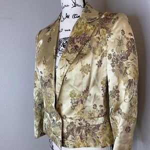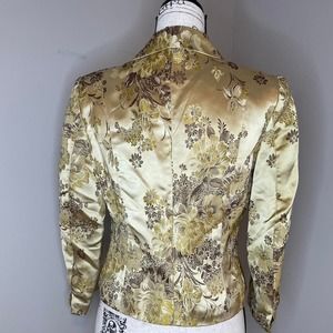 Amazing gold Newport News blazer. Some light staining shown in photos, I have not tried to get it out. The print is STUNNING and photos do not do it justice! Padded shoulders.
