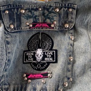 Has some studs, patches and hand painting. This jacket looks like it has a life of its own and has lived out there in the world doing some cool shit. I ordered this in a bill of vintage that was shipped to me form Pakistan. The jacket has a tag inside with German. Don’t know where exactly it’s from but this thing is cool.