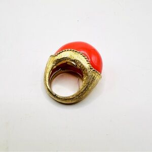 This ring is huge! Size is adjustable. Wear on sides and backside but not noticeable when on.