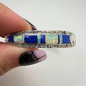 Amazing Vintage Possible Navajo Triple Bear, Lapis/Opal cuff bracelet in 925!