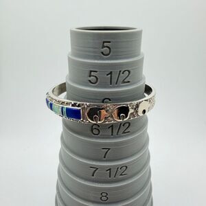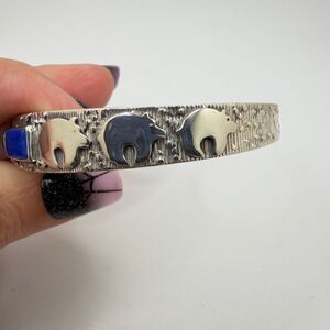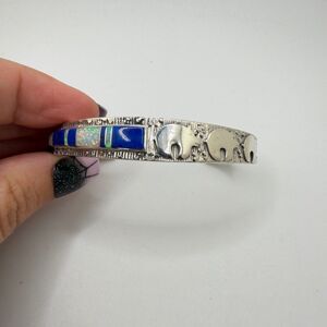 There's three bears on one side of the cuff and opal and lapis lazuli inlay on the other. I've never seen a design like this before.