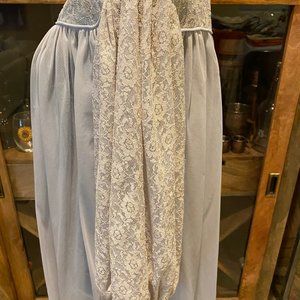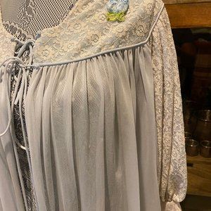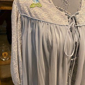 Amazingly Vintage GMC Robe RARE find size large 100% nylon buy this pale blue with white trim lace two tie closure two blue flower details no noticeable snags wonderful shape for its age a real find!
