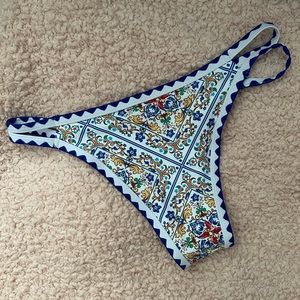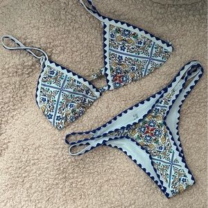 Love this suit but my butt doesn’t fill the bottoms out well enough. I would say it fits true to size. I wear a 32C and the top fit just fine when I tried it on.