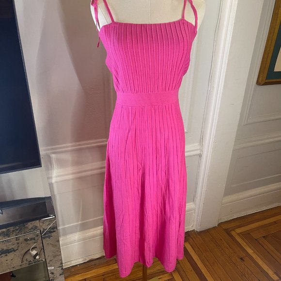 Amazon ARTFREE Barbie Pink Ribbed Knit Summer Maxi Dress Tie Straps Square Neck