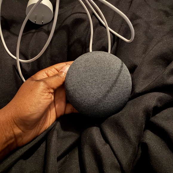 Compact gray smart speaker. Includes charger.willing to consider offers