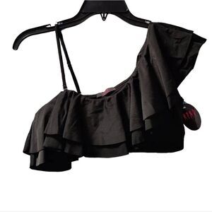 Amazon Avidlove black ruffle one shoulder bikini swim top M