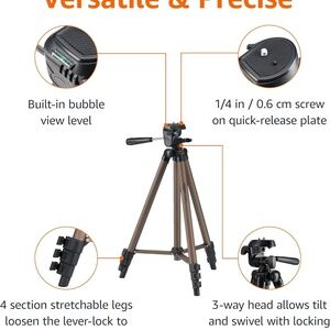 -3-way head allows for tilt and swivel motion; portrait or landscape options;Built in Bubble Level, fast and accurate positioning