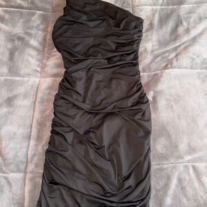 Amazon Black Asymmetrical Ruched Bodycon Dress