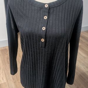 Amazon Black Ribbed Button-Down Blouse